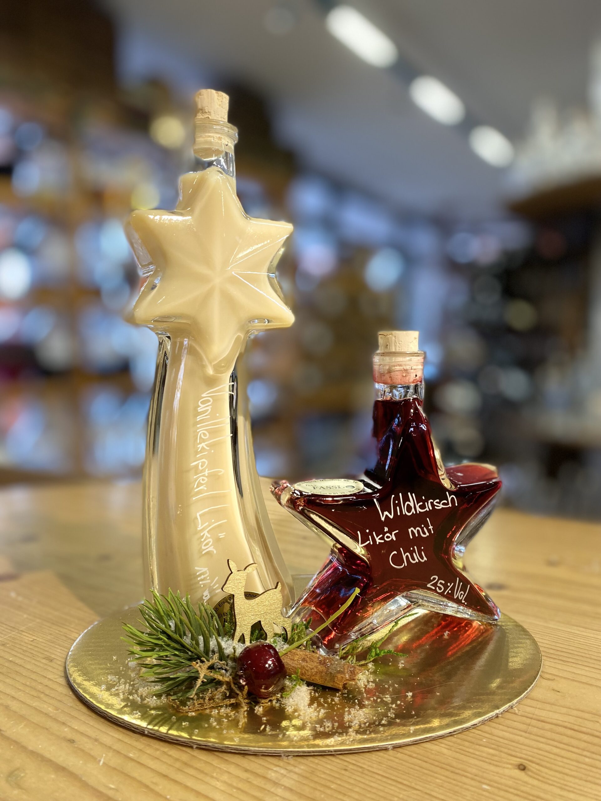 Unsere winterlichen Liköre wie Nusskipferl Likör, Heidelbeerlikör mit Vanille & Zimt und viele mehr runden unser Sortiment ab.
